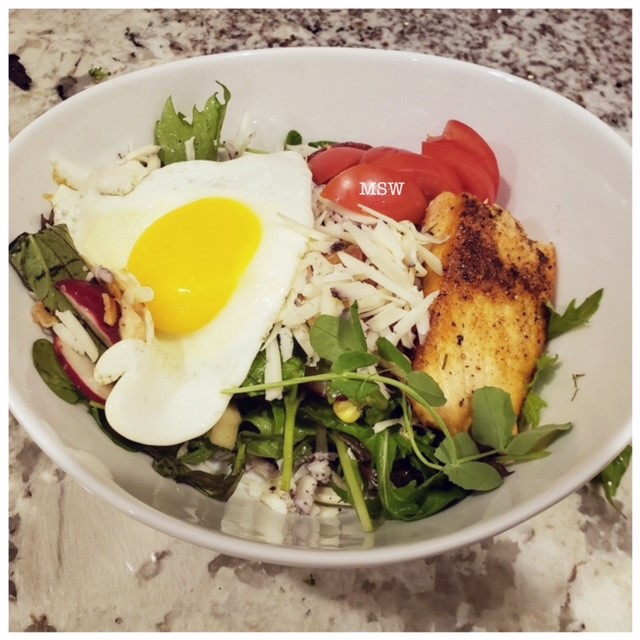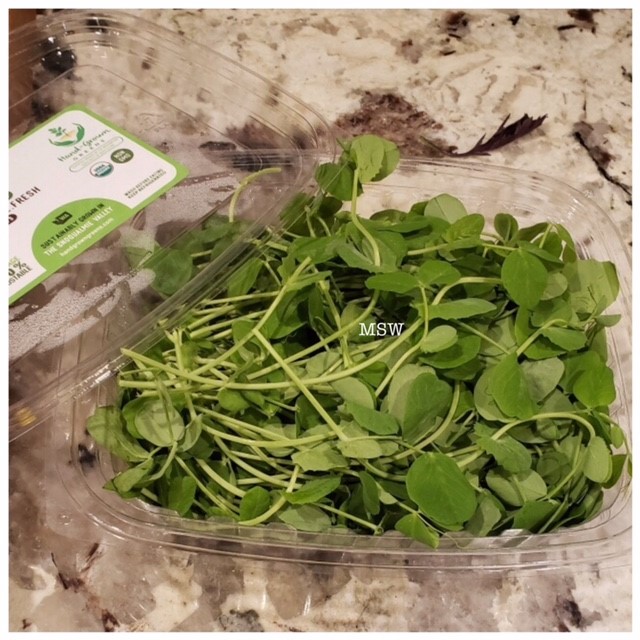 I have seen pea shoots before, but always as garnish. Pea shoots come from the pea plant, usually the snow or sugar snap pea varieties. They are harvested as young 2-to-6-inch shoots, including two to four leaf pairs and the immature tendrils. They may also include small flower buds. Pea shoots have a subtle pea flavor and a light and crunchy texture. I wondered how to use them outside of garnish. Google suggested “Pea shoots can be used fresh in salads, which is gaining in popularity, or traditionally in stir-fry, as with many Asian cuisines” I decided the best way to utilize this ingredient would be raw in a salad. I felt in adding the delicate leaves to a stir fry they would lose their snap and crunch. Have you come across Pea Shoots? If so, how have you utilized them in cooking?