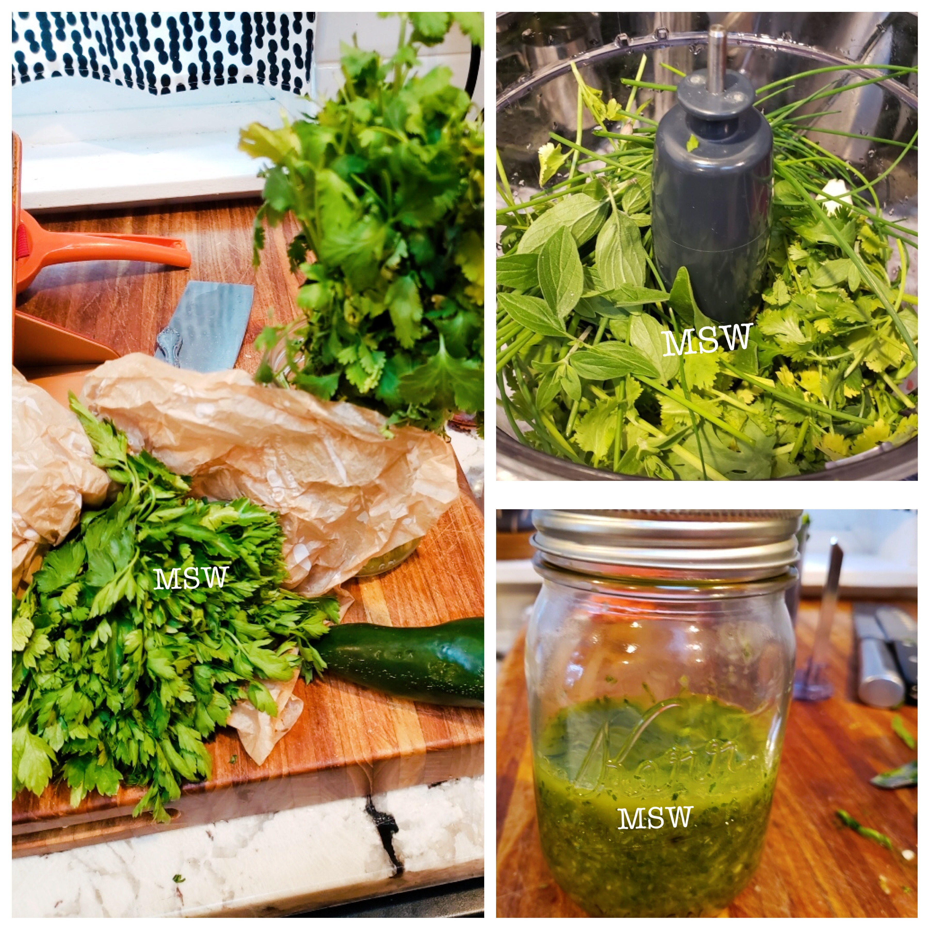 No, big reveal I am just culinary curious of what people think I am making and/or what should be added to a dish. In this post I am making Chimichurri with a lovage. The entire plant is edible, from root to tip, and it has a bright, fresh flavor that tastes a bit like citrusy celery. If you search ” brain teasers,” on my blog you will find many of these posts.