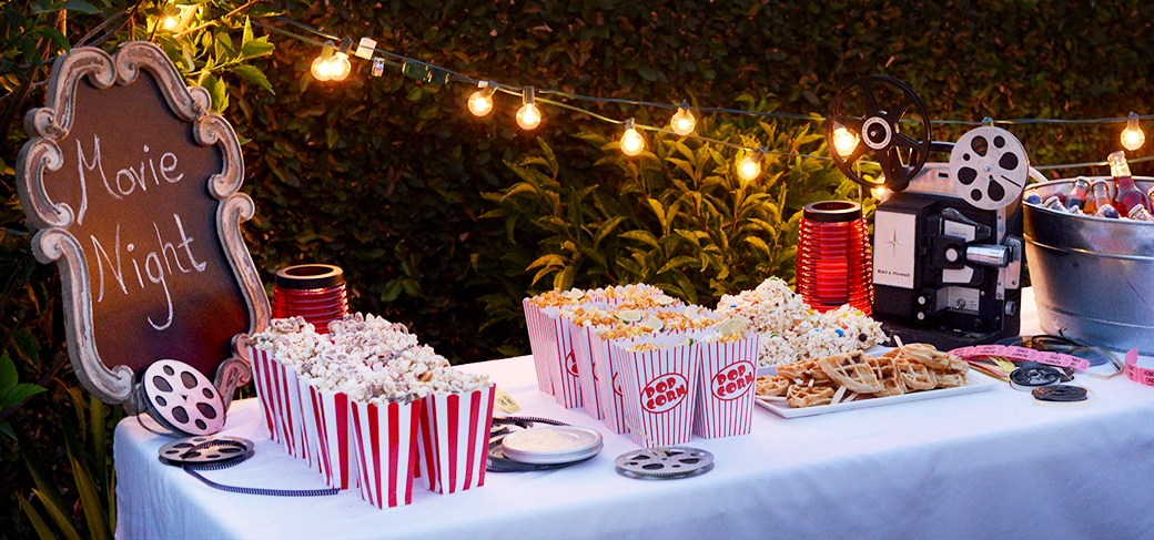 Host a movie night with personal popcorn pails. Fill mini galvanized buckets with popcorn and add labels with your friends’ names