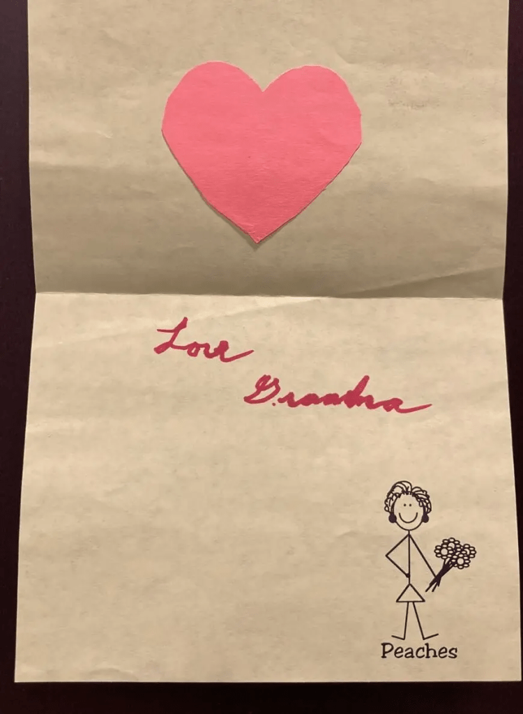 Grandma Peaches always loved Valentine’s Day. In 2008, she enlisted two of her adult granddaughters, Rebecca and Judith, to help her craft handmade cards for all 21 of her children, grandchildren and great-grandchildren. Overcoming both frailty and dementia, Peaches sat up straight at her table and signed each card. On Feb. 14 that year, I received a call as I headed into yoga class. Grandma Peaches had left this earth. Later that day, my card arrived, carrying her final message of love. — Brenda Bernstein