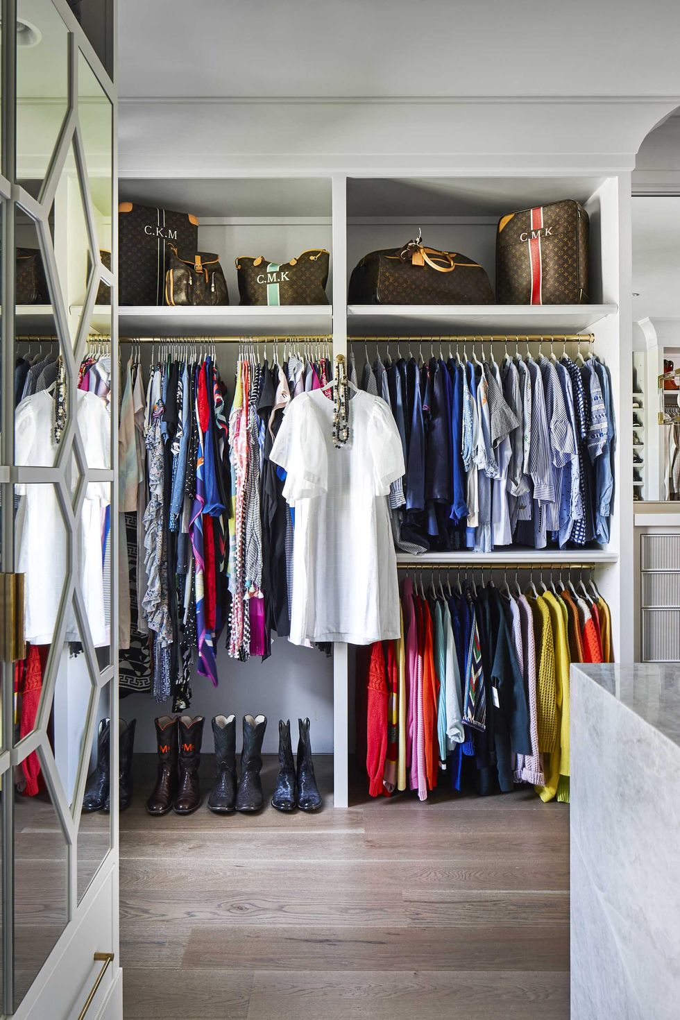 Sometimes a small and a large closet have the same problem—how do you find everything when it’s all hung together? Bright says to start with a system. “Hang clothing by category first—sleeveless, short sleeve, long sleeve, sweaters, jackets,” “Then within each category, segment by color, beginning with white.”