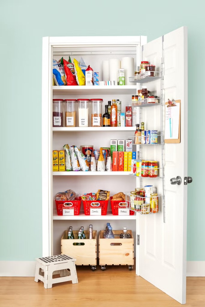 Don’t let any space go to waste! Store condiments, spices and other small items in a rack on the back of the door. You’ll be surprised at just how many items can fit.